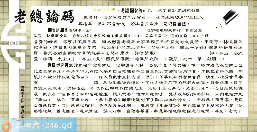 045期:六合皇金句/老总论码/萧公子/林大师/五行夺码/老总信箱截图