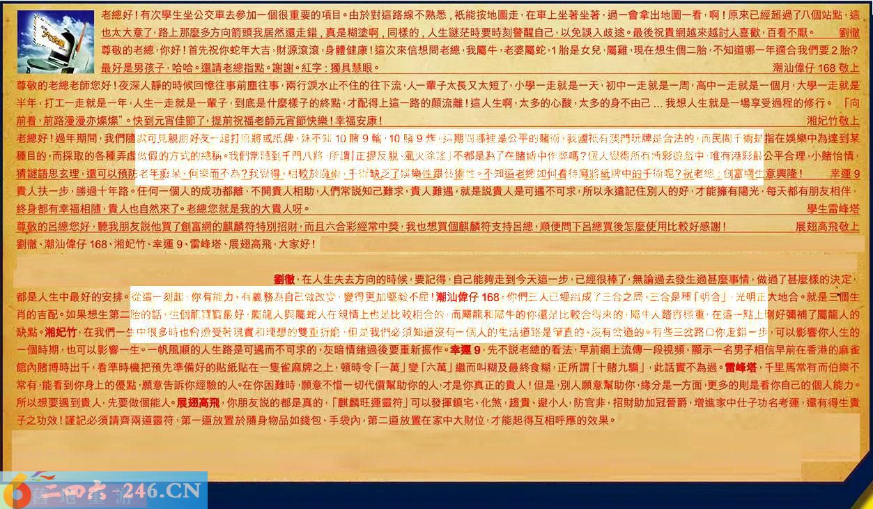 第024期《六合皇信箱文字版》10000%正確!!!正版二四六論壇*精心製作!!! 劉徹、潮汕偉仔168、湘妃竹、幸運9、雷峰塔、展翅高飛,大家好! 【1】.老總好!有次學生坐公交車去参加一個很重要的項目。由於對這路線不熟悉,衹能按地圖走,在車上坐著坐著,過一會拿出地圖一看,啊!原來已經超過了八個站點,這也太大意了,路上那麼多方向箭頭我居然還走錯,真是糊塗啊,同樣的,人生謎茫時要時刻警醒自己,以免誤入歧途。最後祝贵網越來越討人喜歡,百看不厭。劉徹 〖劉徹〗:在人生失去方向的時候,要記得,自己能夠走到今天這一步,已經很棒了,無論過去發生過甚麼事情,做過了甚麼樣的決定,都是人生中最好的安排。從這一刻起,你有能力有義務為自己做改變,變得更加堅毅不屈! 【2】.尊敬的老總,你好!首先祝你蛇年大吉,財源滾滾,身體健康!這次來信想問老總我屬牛,老婆屬蛇,1胎是女兒,屬雞現在想生個二胎,不知道哪一年適合我們要2胎?最好是男孩子,哈哈。還請老總指點。謝謝。紅字:獨具慧眼。潮汕偉仔168敬上 〖潮汕偉仔168〗:你們三人已經組成了三合之局三合是種「明合」,光明正大地合。就是三個生肖的吉配。如果想生第二胎的話,生個龍寶寶最好,属龍人與蛇人在親情上也是比較相合的,而屬龍和屬牛的你還是比較合得來的,屬牛人踏實穩重,在這一點上剛好彌補了屬龍人的缺點。 【3】.尊敬的老總老師您好!夜深人靜的時候回憶往事前塵往事,兩行淚水止不住的往下流,人輩子太長又太短了,小學走就是一天,初中一走就是一周,高中走就是個月,大學走就是半年,打工一走就是一年,人生一走就是一輩子,到底是什麼樣子的終點,才配得上這一路的顛流離!這人生啊,太多的心酸,太多的身不由己...我想人生就是一場享受過程的修行。「前看,前路漫漫亦燦燦"。快到元宵佳節了,提前祝福老師元宵節快樂!幸福安康!湘妃竹敬上 〖湘妃竹〗:在我們一生中很多時也會遭受著現實和理想的雙重折磨,但是我們必須知道沒有一個人的生活道路是筆直的、沒有岔道的。有些三岔路口你走錯步,可以影響你人生的一個時期,也可以影響一生。一帆風順的人生路是可遇而不可求的,灰暗情緒過後要重新振作。 【4】.老總好!過年期間,我們隨處可見親朋好友一起打麻將或紙牌,殊不知10賭9輸,10賭9炸,這期間哪裡是公平的賭術、我國衹有澳門玩牌是合法的,而民間千術是指在娛樂中為達到某種目的,而採取的各種弄虚做假的方式的總稱。我們常聽到千門八將,所謂「正提反脱、風火除謠」不都是為了在賭博中作弊嗎?個人覺得所有博彩遊戲中,唯有港彩最公平合理,小賭怡情,猜謎語思玄理,還可以预防老年敷呆,何樂而不為?我覺得相較於魔術,干術缺乏了娛樂性跟藝術性。不知道老總如何着待麻將紙牌中的干術呢?祝老總創富網生意興隆!幸運9 〖幸運9〗:先不說老總的看法,早前網上流傳一段視頻,顯示一名男子相信早前在香港的麻雀館內賭博時出千,看準時機把預先準備好的貼紙貼在一隻雀麻牌之上,頓時令「一萬」變「六萬」繼而叫糊及最終食糊,正所謂「十賭九骗」,此話實不為過。 【5】.贵人扶一步,勝過十年路。任何一個人的成功都離,不開貴人相助,人們常說知己難求,貴人難遇,就是說貴人是可遇不可求,所以永遠記住别人的好,才能擁有陽光,每天都有朋友相伴,終身都有幸福相隨,贵人也自然來了。老總您就是我的大贵人呀。學生雷峰塔 〖雷峰塔〗:千里馬常有而伯樂不常有,能看到你身上的優點,願意告訴你經驗的人。在你困難時,願意不惜一切代價幫助你的人,才是你真正的貴人!但是別人願意幫助你,緣分是一方面,更多的則是看你自己的個人能力。所以想要遇到贵人,先要做個能人。 【6】.尊敬的呂總您好,聽我朋友说他買了創富網的麒麟符特別招財,而且六合彩經常中獎,我也想買個麒麟符支持呂總,順便問下呂總買後怎麼使用比較好感謝!展翅高飛敬上 〖展翅高飛〗:你朋友說的都是真的,「麒麟旺運靈符」可以發揮鎮宅、化煞,趨貴、避小人,防官非,招財助加冠晉爵,增進家中仕子功名考運,還有得生贵子之功效!謹記必須請齊兩道靈符,第一道放置於隨身物品如錢包、手袋內,第二道放置在家中大財位,才能起得互相呼應的效果。 紅字:舊地重游 暗码:08151947 [释义]重新来到曾经居住过或游览过的地方。 [出处]郭沫若《洪波曲》第一章:“广州,在1926年北伐的那一年,我是住过三个多月的,整整隔了十二年又到旧地重游了。”
