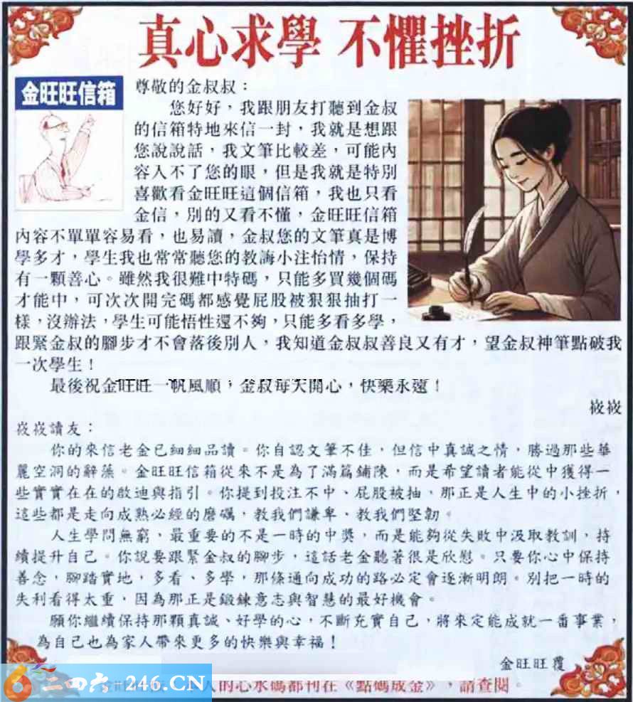 2025026期026期:金旺旺信箱彩民推荐→→《真心求學 不懼挫折》