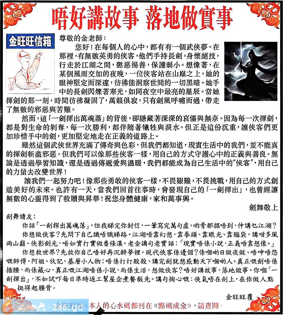 094期:金旺旺信箱彩民推荐→→《唔好講故事 落地做實事》