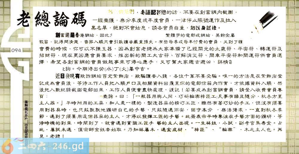 094期:六合皇金句/老总论码/萧公子/林大师/五行夺码/老总信箱截图