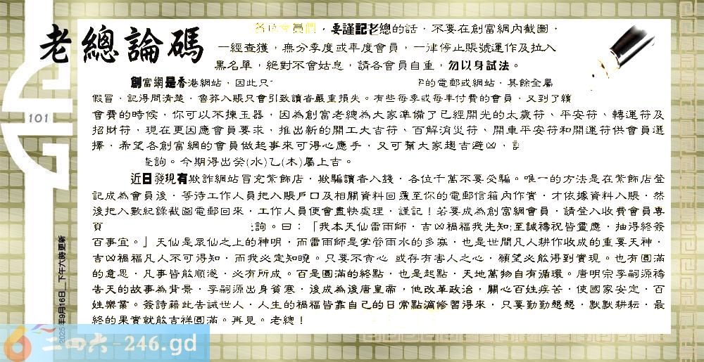 101期:六合皇金句/老总论码/萧公子/林大师/五行夺码/老总信箱截图