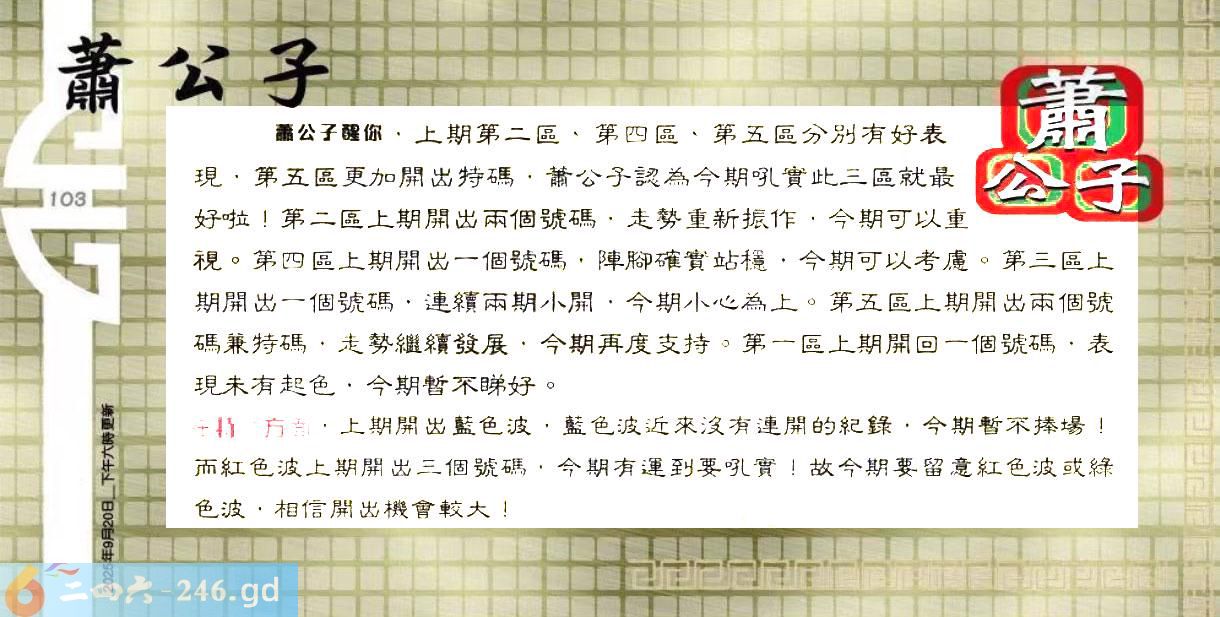 2025105期105期:彩民推荐〖貼信讀者論壇〗