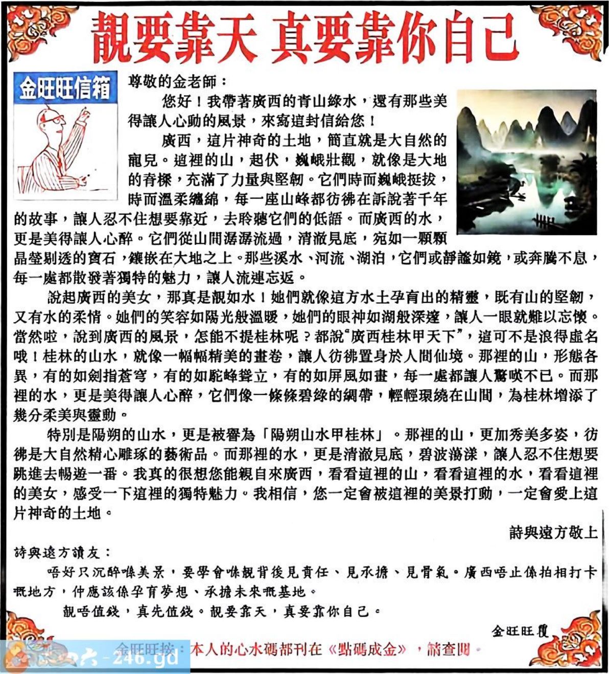 109期:金旺旺信箱彩民推荐→→《靚要靠天 真要靠你自己》