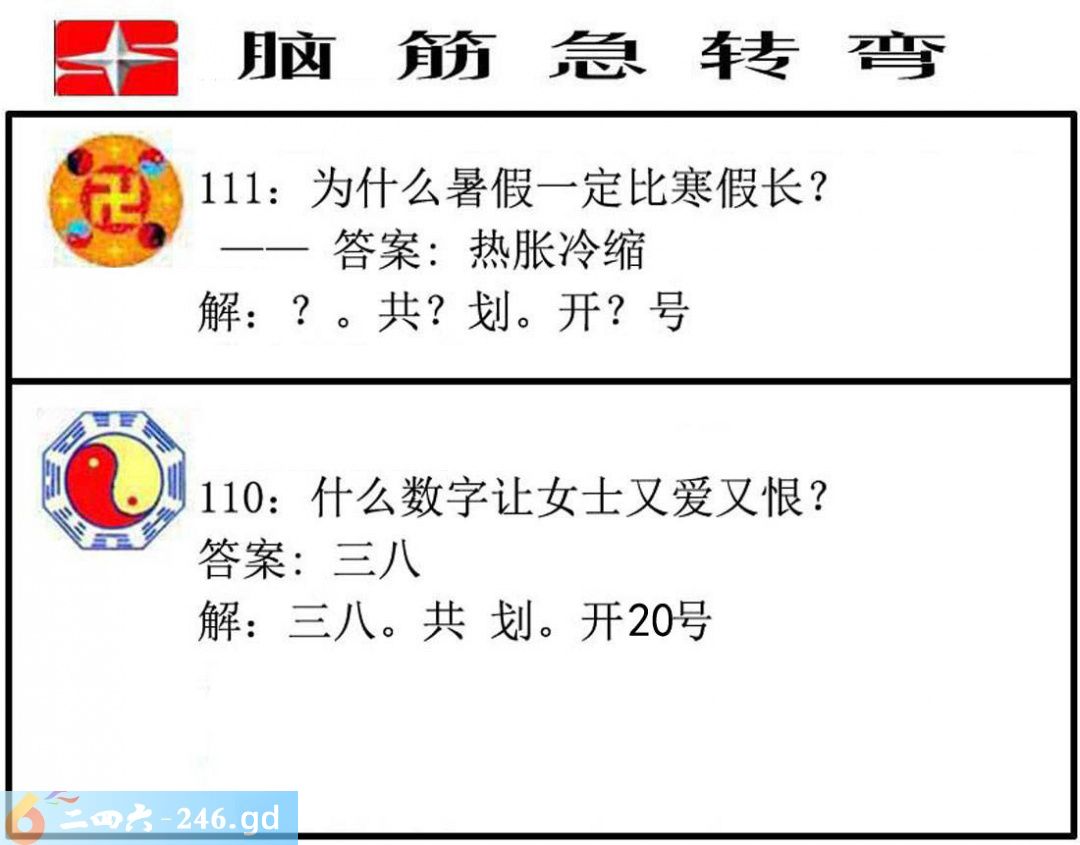 2025110期110期:脑筋急转弯