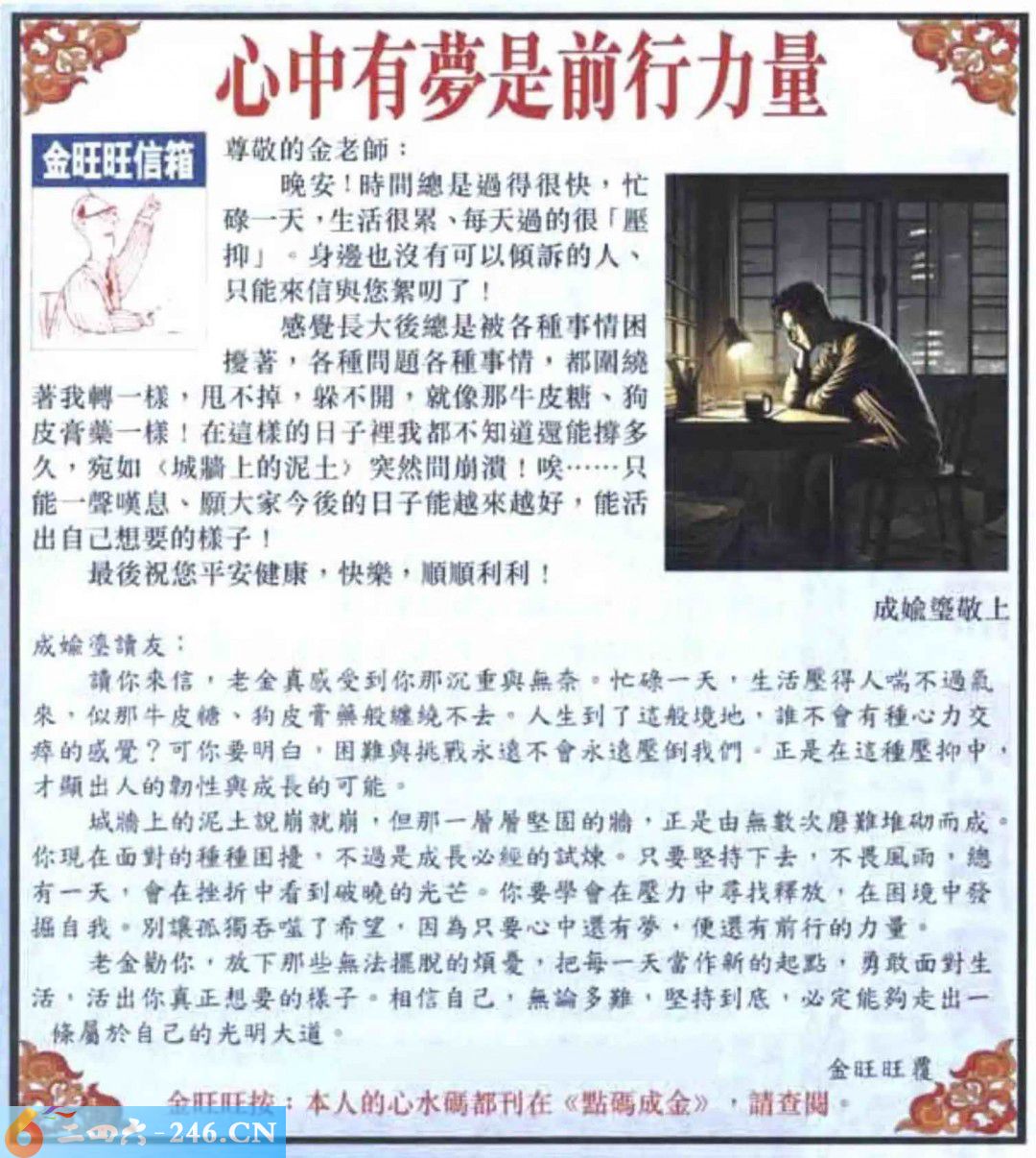 2025032期032期:金旺旺信箱彩民推荐→→《心中有夢是前行力量》