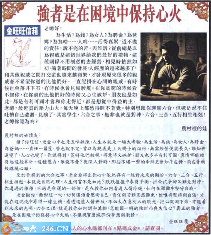 035期:金旺旺信箱彩民推荐→→《強者是在困境中保持心火》