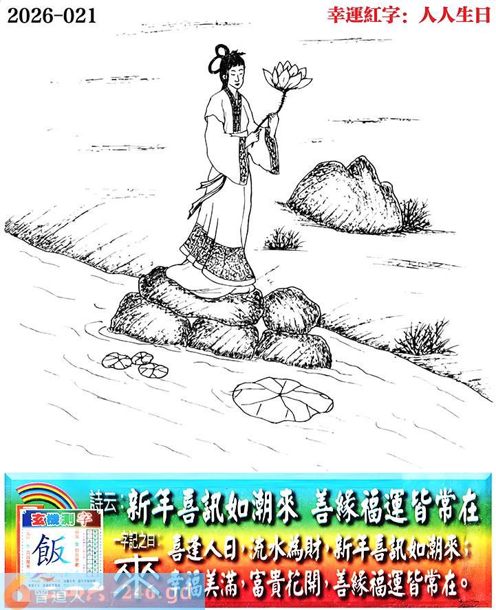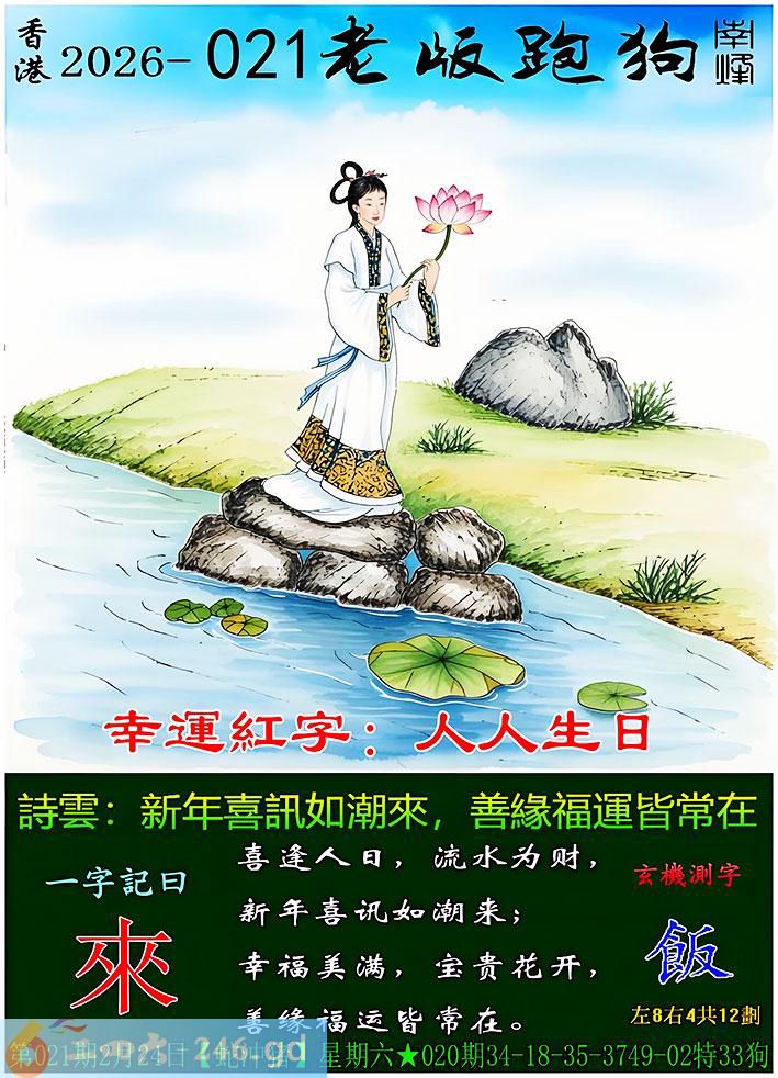 021期老版跑狗一字記之曰:【來】 詩雲:新年喜訊如潮來,善緣福運佳皆常在。