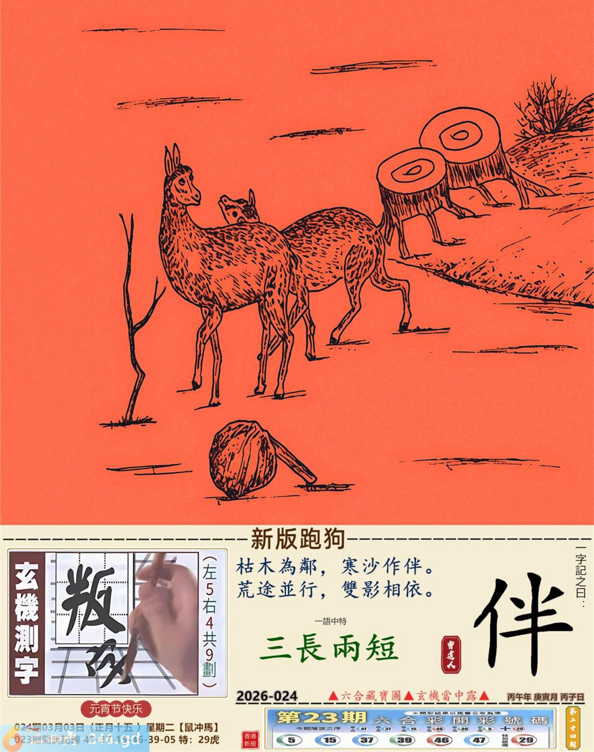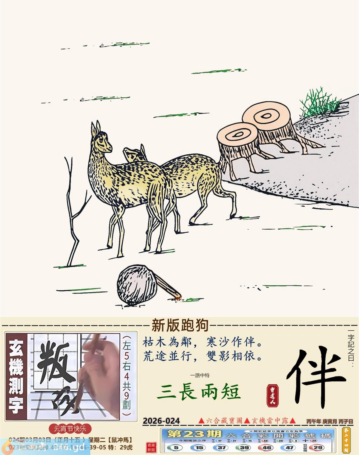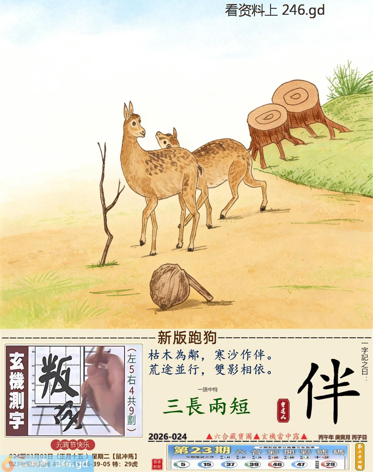 2026年3月3日024期丙午(马)(涧下水) 024期:老版跑狗玄機一字記之曰:【示】 詩云:似是疑非觀文字畜牲哪懂看告示 茫無頭緒,不明所以,似是疑非觀文字; 一知半解,沒有意思,畜牲哪懂看告示。 玄機測字:《濟》 密圖詩:獨看密圖到三更 《記》:雙紅開行二十四 特碼大小單雙句:彩禮要十萬 今期必中:馬鐵 024期:特碼歇后語 稀泥蛋子-----软货 024期正版四字梅花诗:闻鸡起舞。 024期火车头:烧伤狗。诗:虎死狗伤,一七一八比短长。 024期香港第一手欲钱料:春秋战国。 024期曾道人说:“耳机?” 024期另版四字梅花诗:海豚潜水。 024期香港第一手欲钱料:欲钱找世界上最美的女人。 024期曾道人说:“为什么人人都要大便”? 024期:绿红。 024期:四川是特码 024期:智力金壤; 024期:信箱紅字:【昂然直進】 024期:【暗碼:15-34-37-42】 024期:一語中特:【三長兩短】 發財玄機圖:爆發發力動作猛烈圖中明虎藍綠 024期:藏寳圖 新:风雷多向庙中来 老:当初不合轻分散 禁:羊禁:5尾玄机字《弃》 2026年024期【生活幽默】版 〖比丑〗 有一天,三個相貌醜陋的人在一起閑聊,他們要用一句成語來形容自己奇醜無比。甲説:我的長相太隨心所欲了,所以我很醜。 乙説:那也不如我長得爲所欲爲我更 醜。 丙説:你們都别争了,就我這長相绝對下不爲例了,所以我最醜!