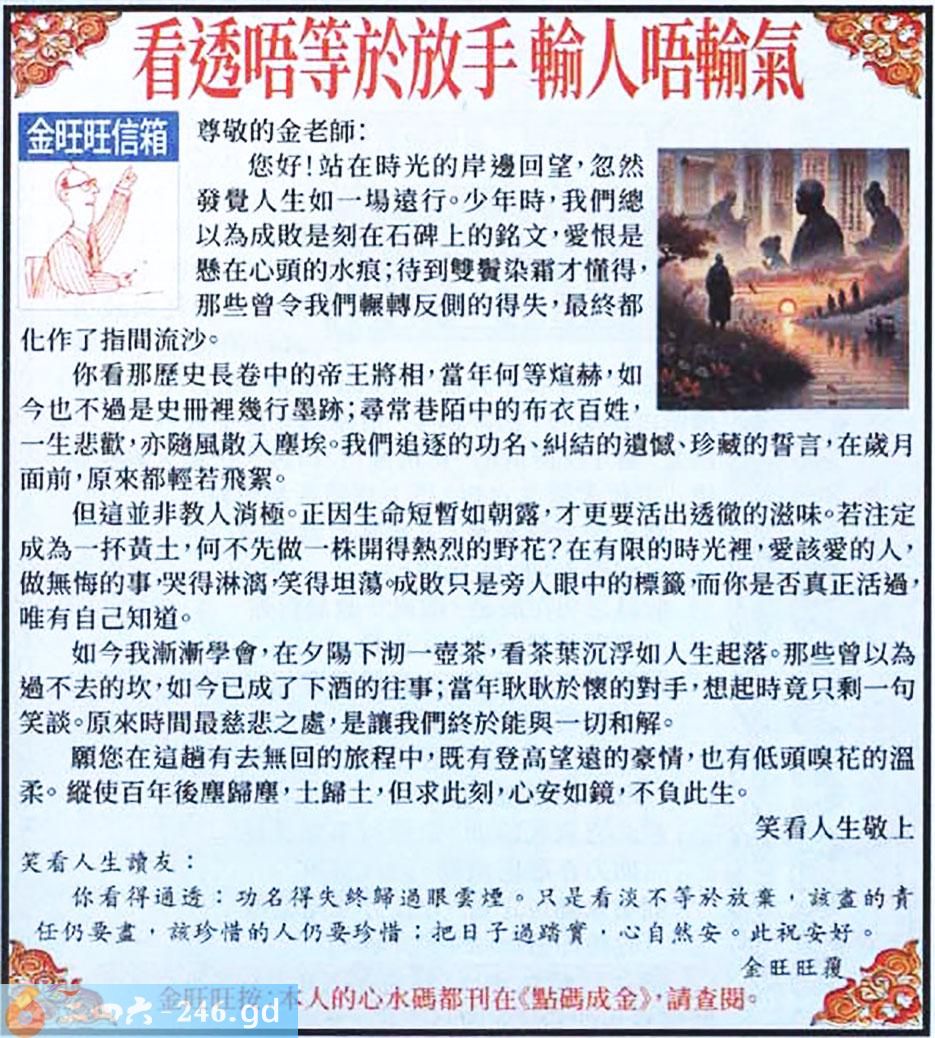 043期:金旺旺信箱彩民推荐→→《看透唔等於放手 輸人唔輸氣》